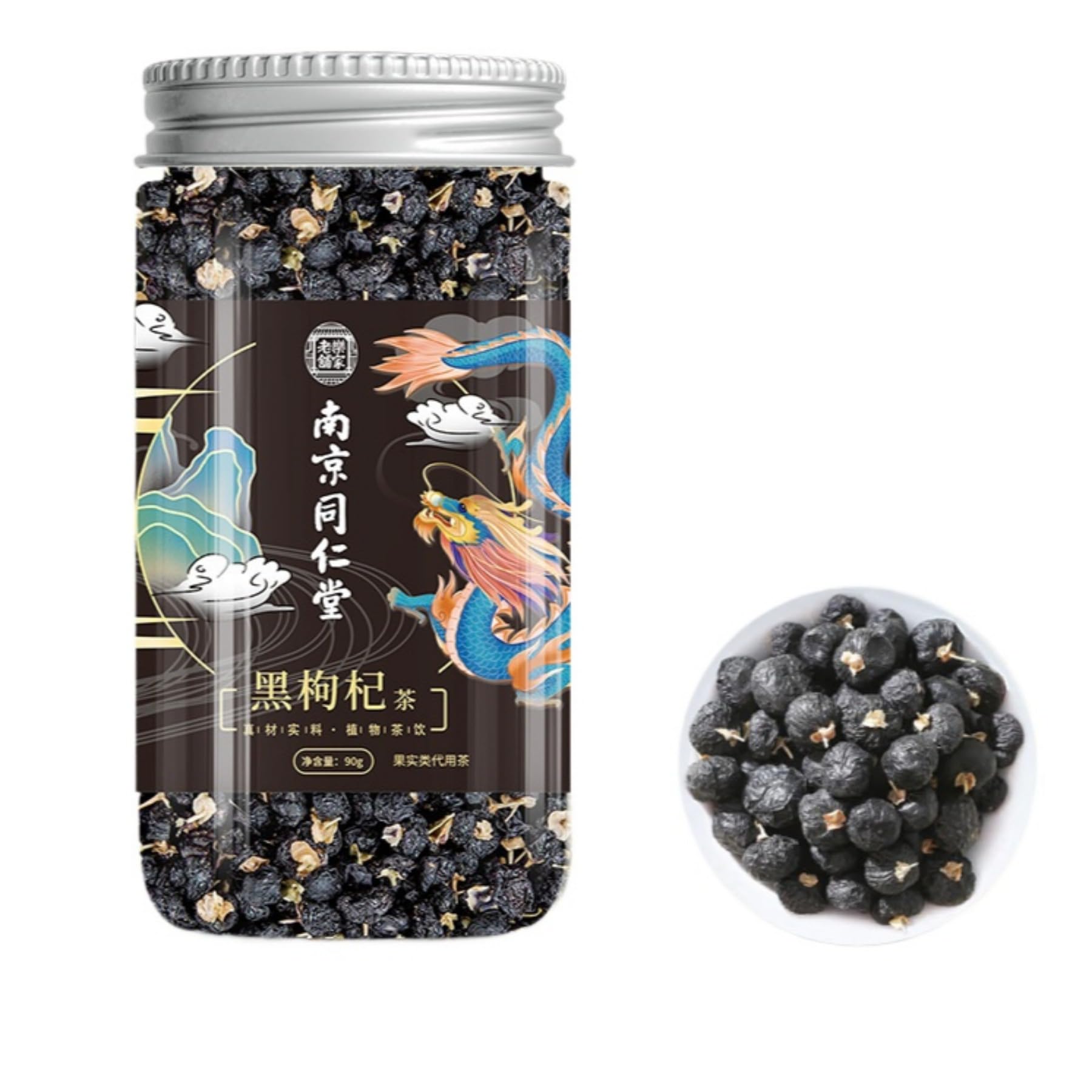 Item number:Premium Canned Black Goji Berry 90g (3.17oz) Sulfur-free Anthocyanin Goji Berry Infusion Tea Loose Leaf Tea Chinese Herbal Tea 北京同仁堂罐装黑枸杞无硫花青素枸杞泡茶