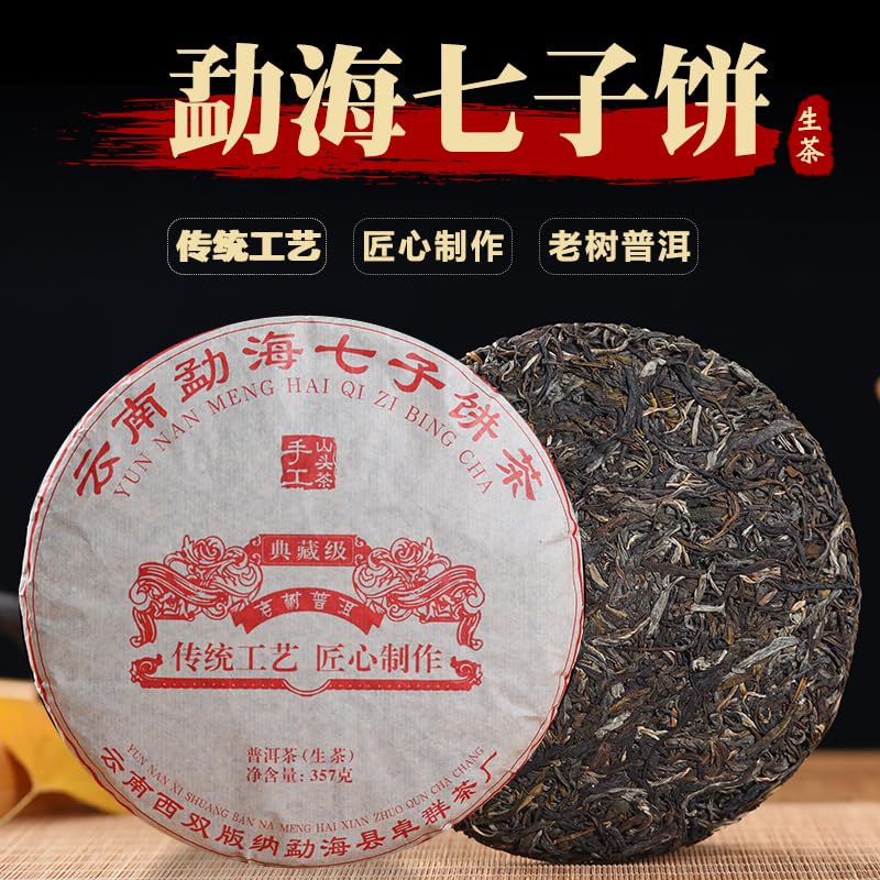 Premium Yunnan Menghai Qizi Cake Tea Old Tree Puerh Raw Tea 357g Healthful Choice of Green tea 云南勐海七子饼茶 老树普洱生茶357克
