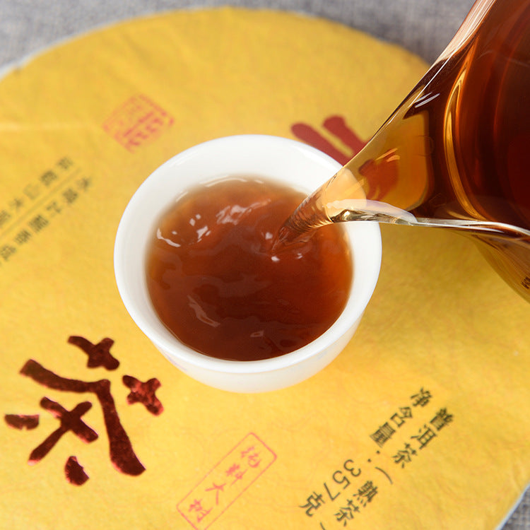 Yunnan Puerh Tea Ripe Tea Cake 357g Qizi Cake Tea Tea King Da Jin Ya Mellow Old Tea
